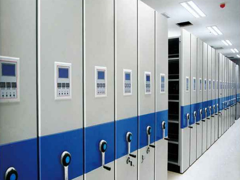2、密集柜固定列移動列可采用安裝240*128點陣藍底觸摸液晶屏(選裝系統(tǒng)),此觸摸液晶屏能接收由電腦數(shù)據(jù)庫傳送下來的數(shù)據(jù),能自動顯示密集架中溫度與濕度,并能瀏覽電腦中的檔案數(shù)據(jù)庫,管理人員能直接在此觸摸屏上操作密集架,并可通過查詢到的數(shù)據(jù)直接打開此區(qū)中任何相對應(yīng)的密集架,方便,快捷。